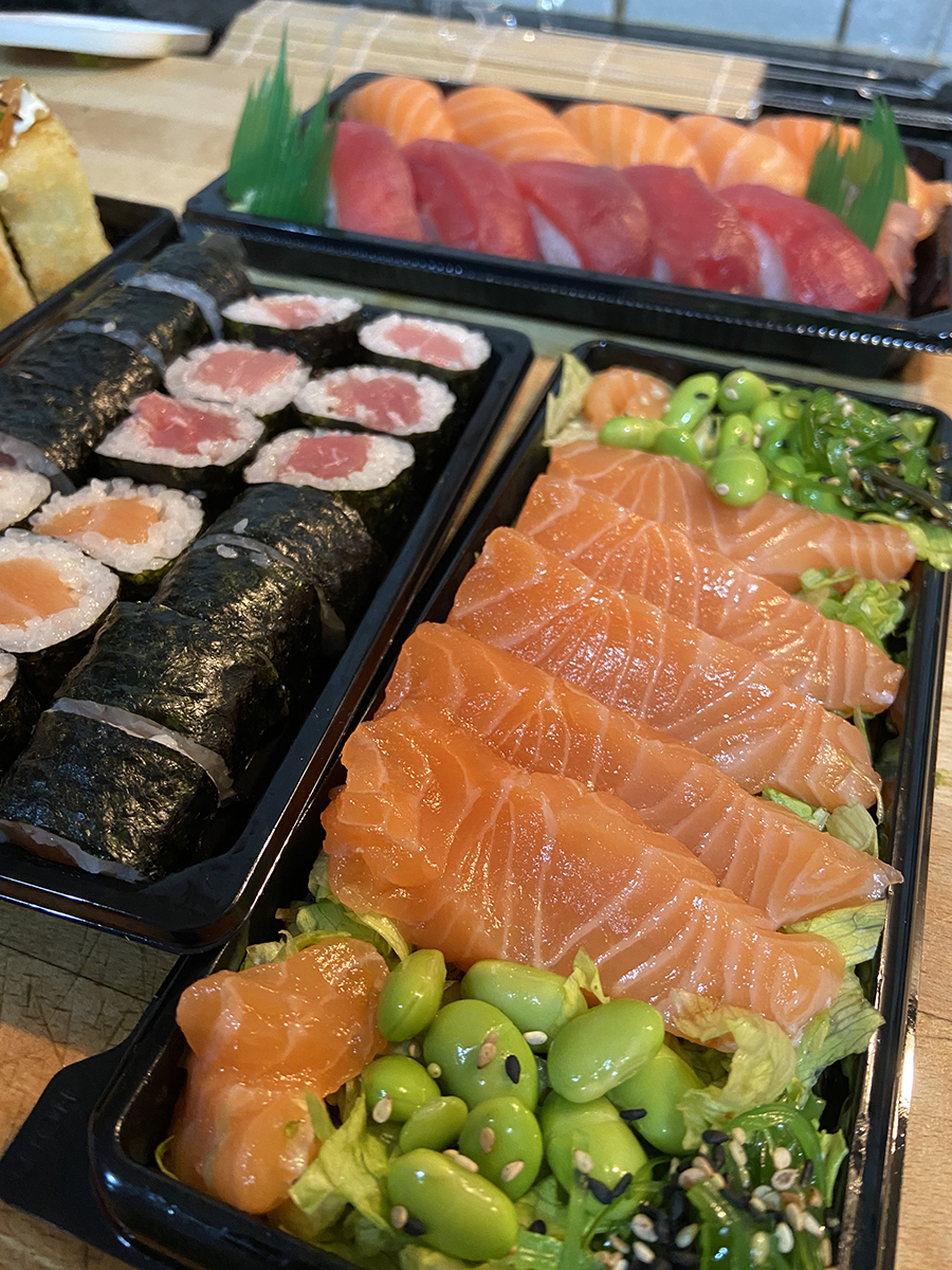 Principalmente trabajamos preparando toda clase de platos listos para consumir en eventos, reuniones, presentaciones, formaciones… con el sushi como principal reclamo.